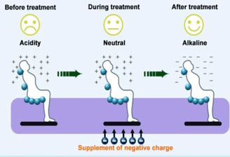 The function of negative potential helps prevent arteriosclerosis, activate enzyme function in the human body, improve the body's acidic condition (From Acidic to low alkaline body condition, PH = 7.36 - 7.44) and remove free radicals in the body. Applying the Negative Potential function for 30 minutes has the same results as relaxing in the forest for 3 hours. It is used especially for intestinal diseases, arthritis, gastric, gout, asthma, heart failure, migraine, stress and others related to the body's stress.